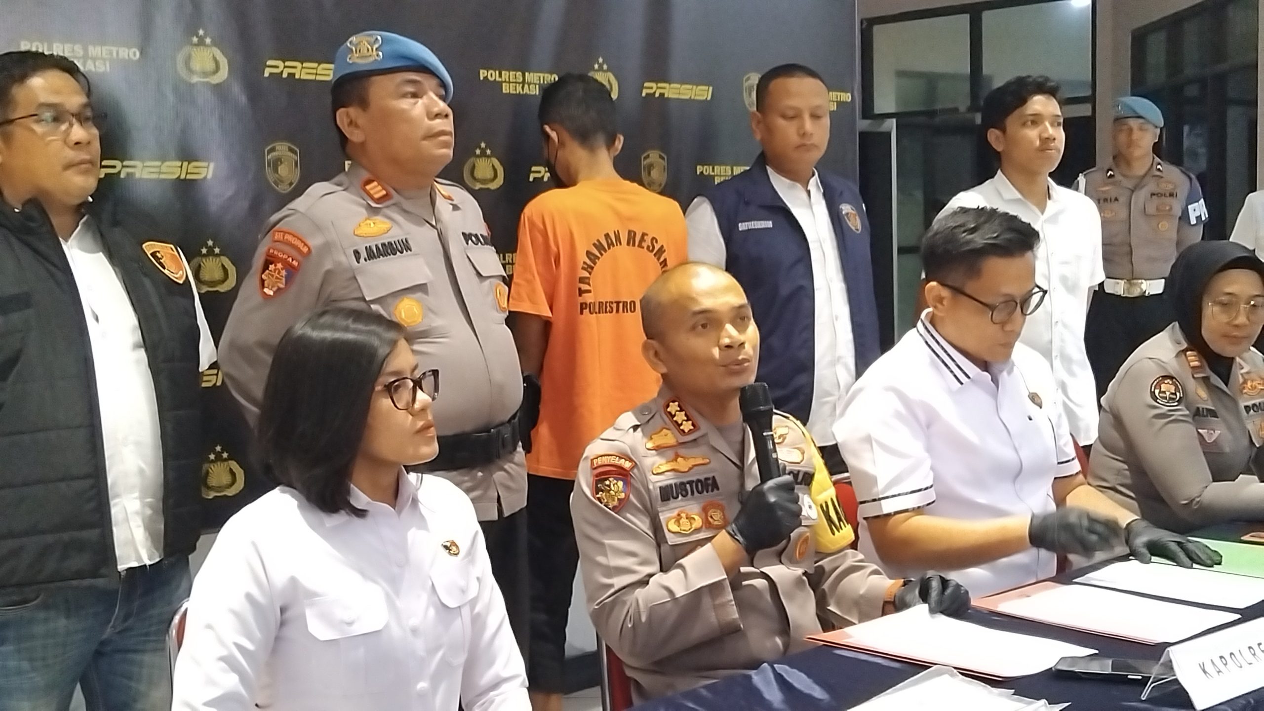 Konferensi Pers Ungkap Kasus Persetubuhan dan Pencabulan Anak Yang Dilakukan oleh Ustad di Polres Metro Bekasi