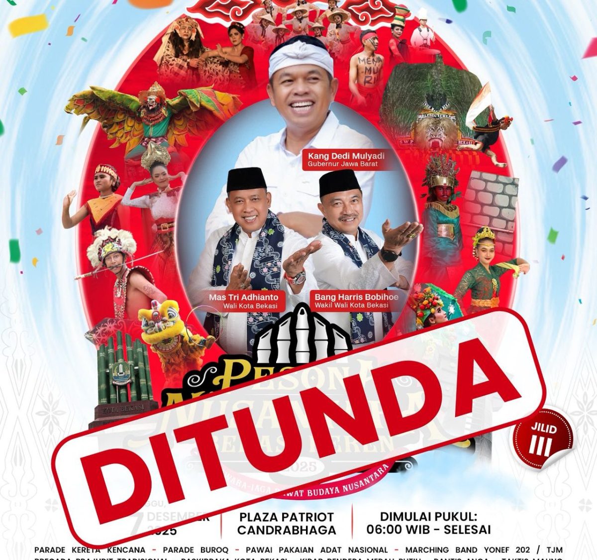 “Atas nama Pemerintah Kota Bekasi, kami menyampaikan permohonan maaf dan apresiasi setinggi-tingginya kepada seluruh pelaku seni, peserta, dan masyarakat yang telah menantikan Pesona Nusantara Bekasi Keren,” ujarnya dalam keterangan resminya dikutip bekasiguide.com, Kamis 04 Desember 2025.