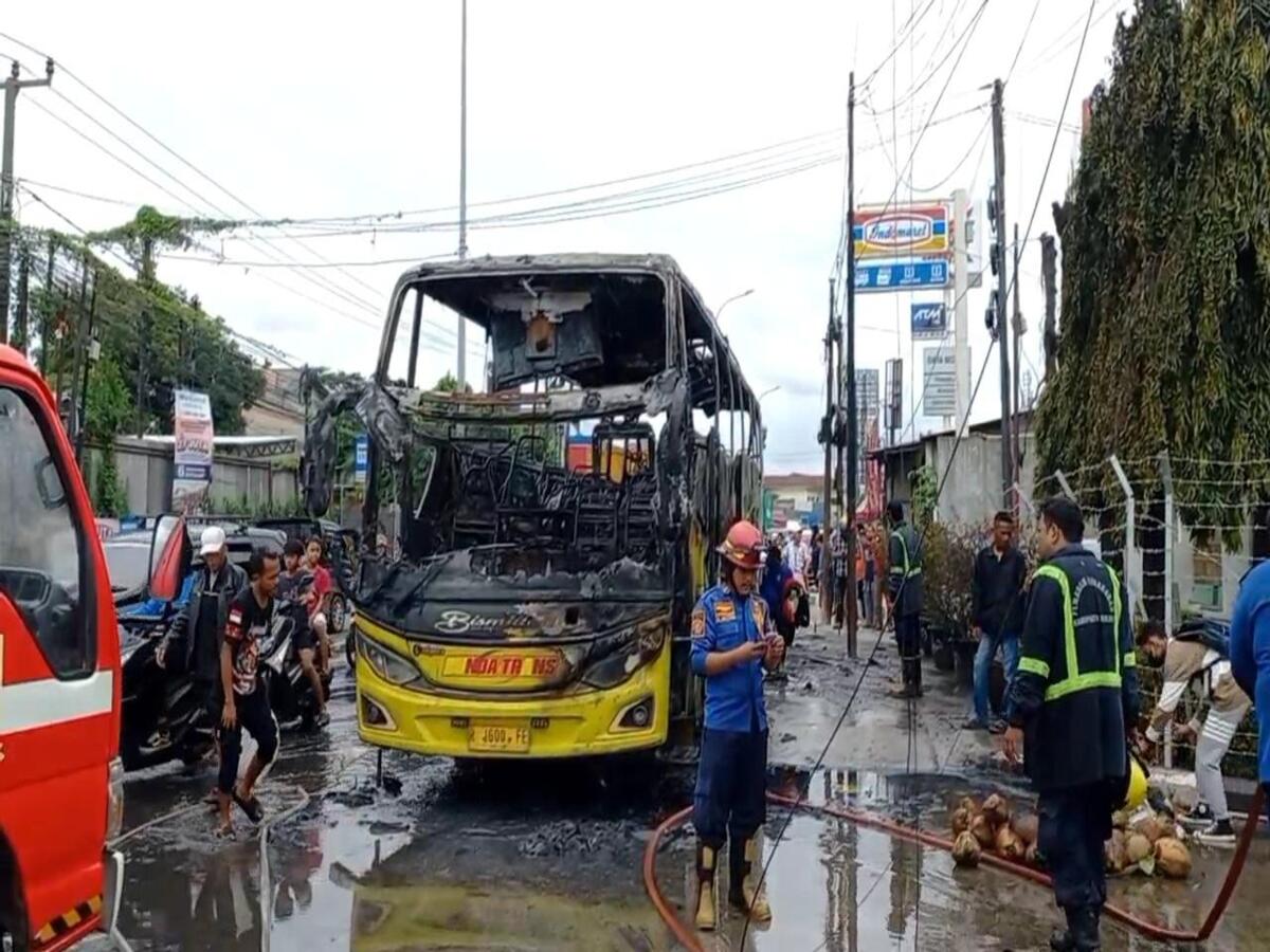 Bus Terbakar di Tambun, Damkar Kabupaten Bekasi Pastikan Tidak Ada Korban