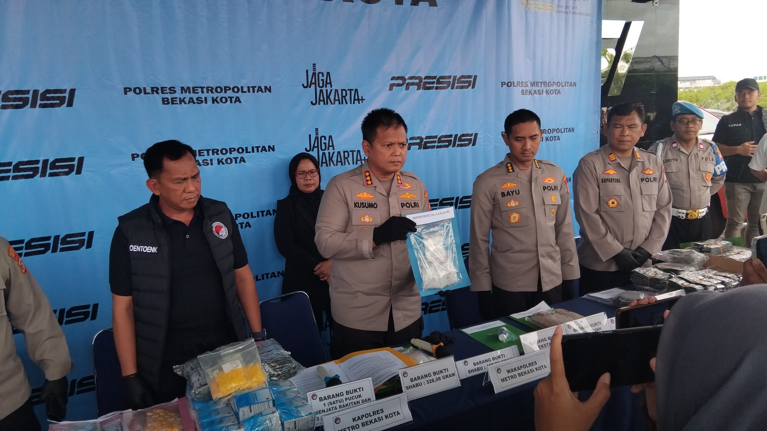 Polres Metro Bekasi Kota mengungkap kasus peredaran narkotika jenis sabu dengan barang bukti seberat 49,69 gram. Dua tersangka berinisial NPS dan IBN diamankan pada Minggu 25 Januari 2026.