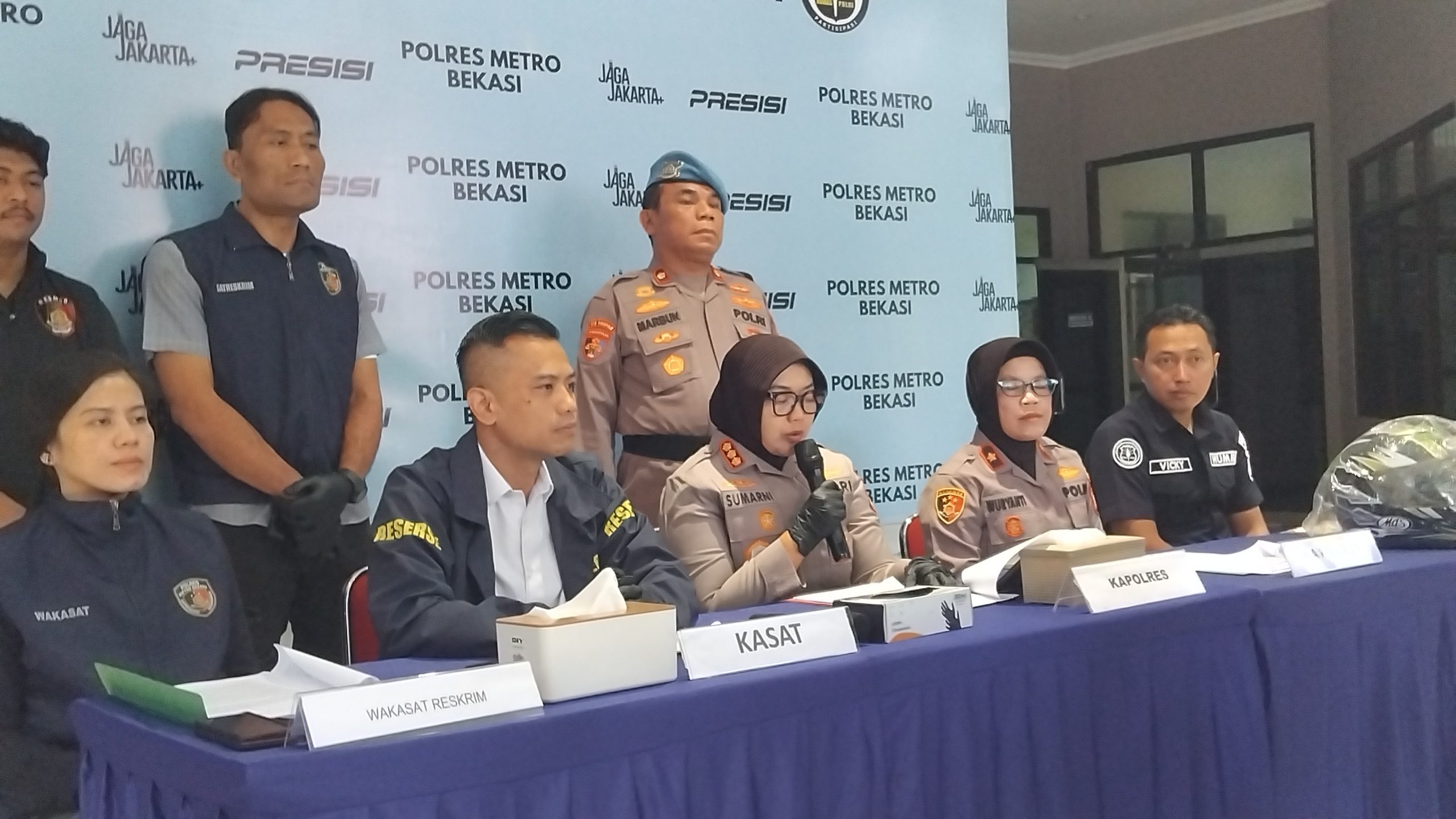 Satreskrim Polres Metro Bekasi menangkap tiga pelaku penyiraman air keras yang beraksi di Perumahan Bumi Sani Permai, Desa Setia Mekar, Kecamatan Tambun Selatan, Kabupaten Bekasi pada Jumat 3 April 2026.