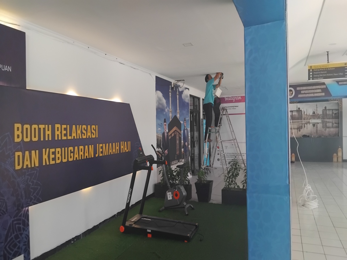 “Kami siapkan berbagai fasilitas secara gratis agar jemaah tetap nyaman dan fokus mempersiapkan diri sebelum berangkat,” kata Kania dikutip Bekasiguide.com, Senin 20 April 2026.Petugas menyiapkan booth relaksasi dan kebugaran di Asrama Haji Bekasi sebagai fasilitas tambahan untuk menjaga kondisi fisik jemaah sebelum keberangkatan ke Tanah Suci.